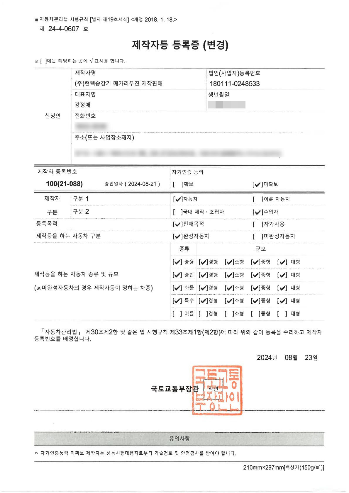 1998년부터 제조업을 경영한 노하우를 바탕으로 안전한 기술력 보유